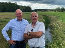 Foto: Johan de Boer (Prolander) en Gerard Zeemans (Waterschap Noorderzijlvest) bij het Peizerdiep.